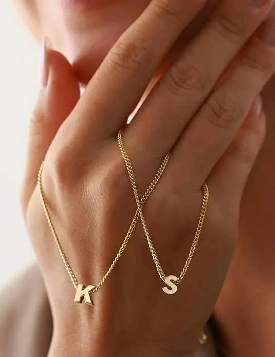 ASHINE Initial Necklace for Women, 14K Gold Plated Brass Letter Pendant with Cuban Chain, Adjustable Choker Necklace A–Z