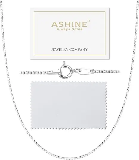 The ASHINE 925 Sterling Silver Box Chain Necklace is a versatile everyday essential, designed to be both delicate in appearance and strong enough for long-term wear. Made with genuine Italian box chain construction, it offers excellent durability while maintaining a sleek, refined look that works well alone or with pendants. The 0.8mm and 1mm thickness options provide flexibility depending on whether you prefer a subtle or slightly bolder style, and the wide 16–36 inch length range ensures a comfortable, customized fit. Included with a silver polishing cloth, this necklace is easy to maintain and keep shining over time, making it a practical and stylish choice for daily use