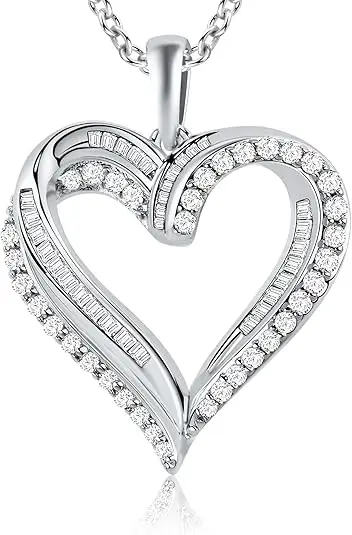 ASHINE Endless Love 1.6CT Moissanite Heart Necklace for Women, 925 Sterling Silver White Gold Plated, VVS1 Clarity Mixed-Cut Pendant